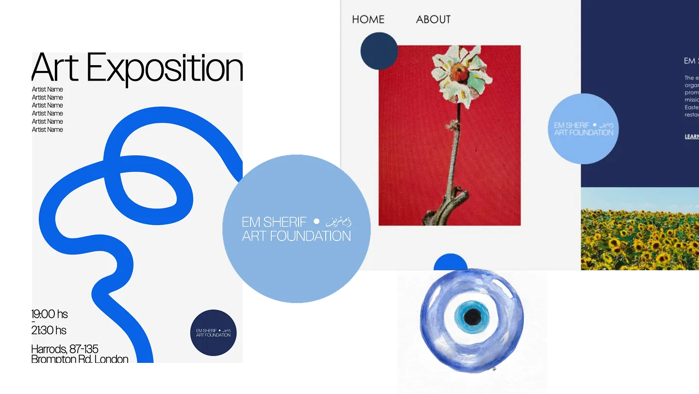 We were brought in to develop the brand identity and website design ahead of launch, with a clear brief: create a brand that feels connected to Em Sherif’s heritage while speaking to a new, younger art-focused audience.